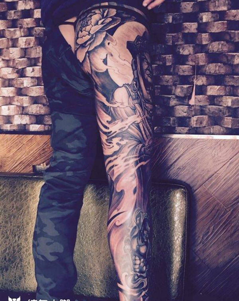 • T网红王老大花腿龙纹身图片_腿部新传统纹身图案