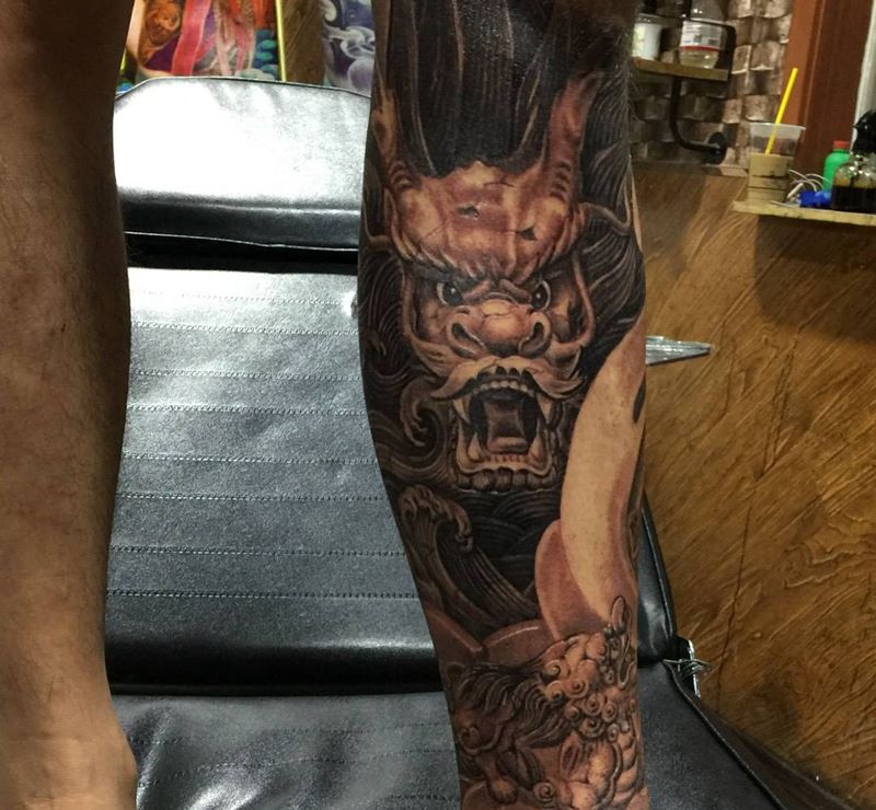 当前位置: 首页 >山东省济宁市纹身店-山东赤焰堂纹身纹身图案>唐狮纹身图片