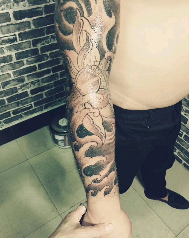 当前位置: 首页 >山东省泰安市纹身店-劫月刺青纹身图案>原创浪花与莲纹身图片