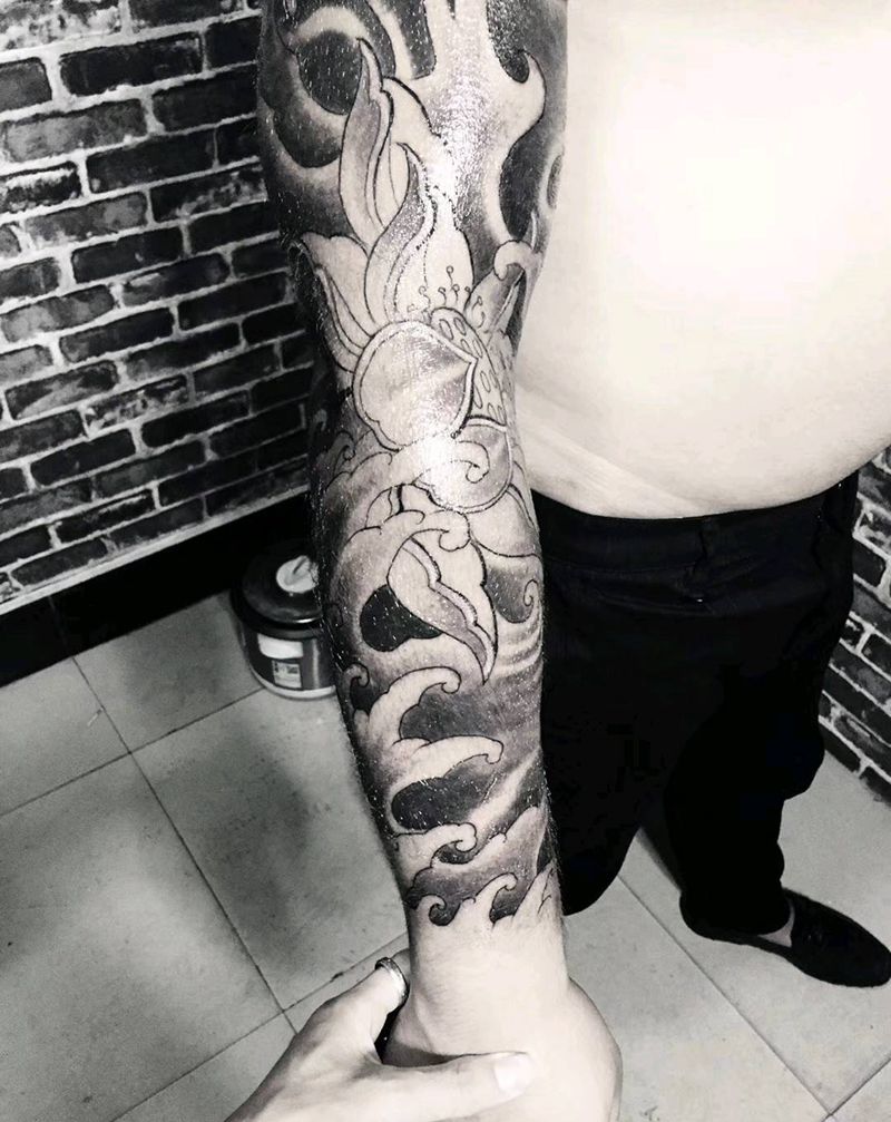 当前位置: 首页 >山东省泰安市纹身店-劫月刺青纹身图案>原创浪花与莲纹身图片