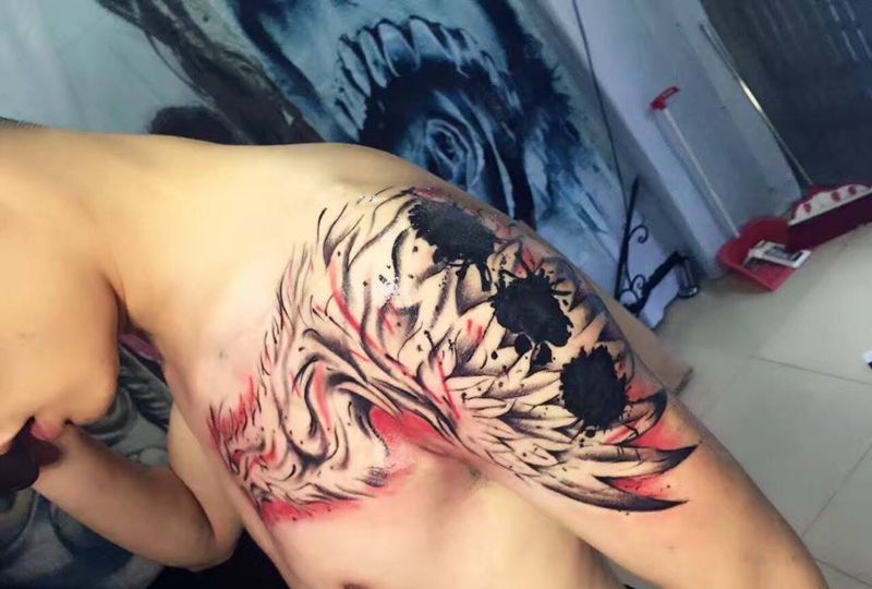 • 女性大花胸纹身_43张霸气漂亮的女性大花胸纹身图案作品