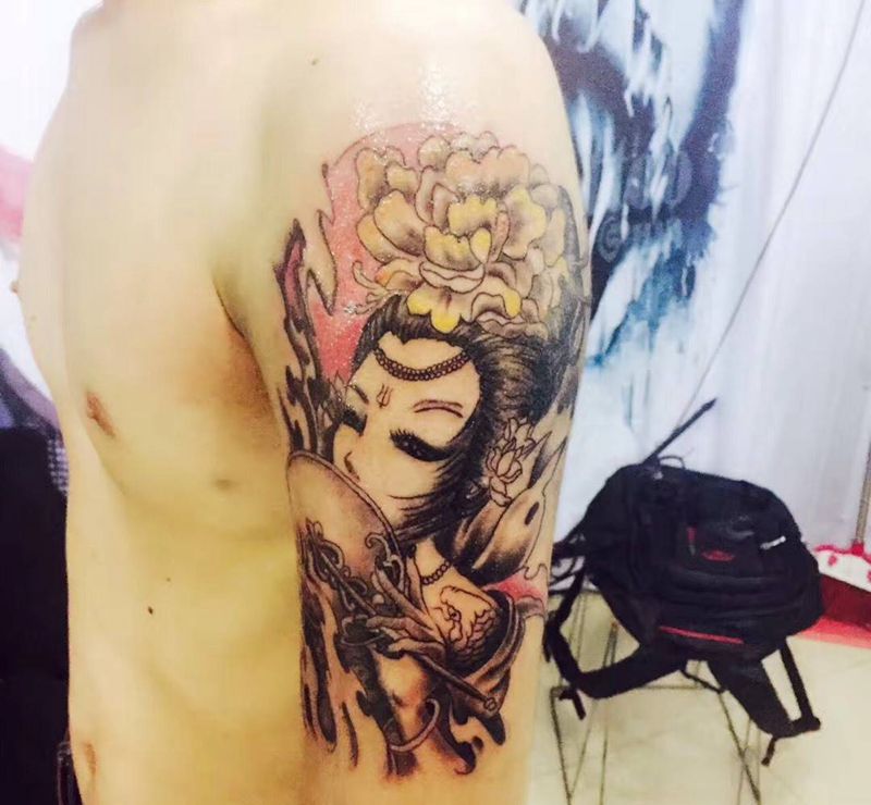 当前位置: 首页 >山东省泰安市纹身店-劫月刺青纹身图案>艺妓纹身图片_成品手臂肖像纹身图案