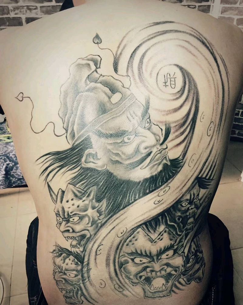 黑灰满背纹身图案