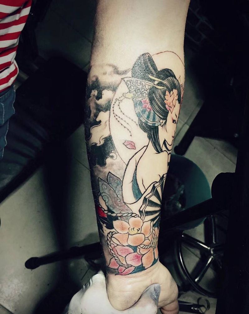 当前位置: 首页 >山东省泰安市纹身店-劫月刺青纹身图案>艺妓荷花、纹身图片
