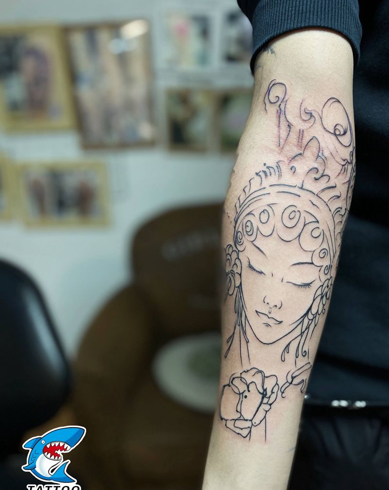 当前位置: 首页 >山东省威海市纹身店-威海玩刺青工作室纹身图案>中国风花旦纹身图片_手臂水墨纹身图案