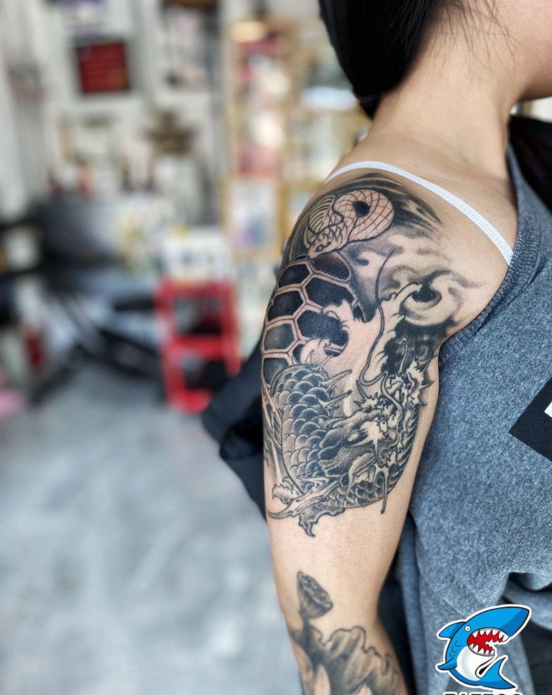 当前位置: 首页 >山东省威海市纹身店-威海玩刺青工作室纹身图案>玄武纹身图片_手臂新传统纹身图案