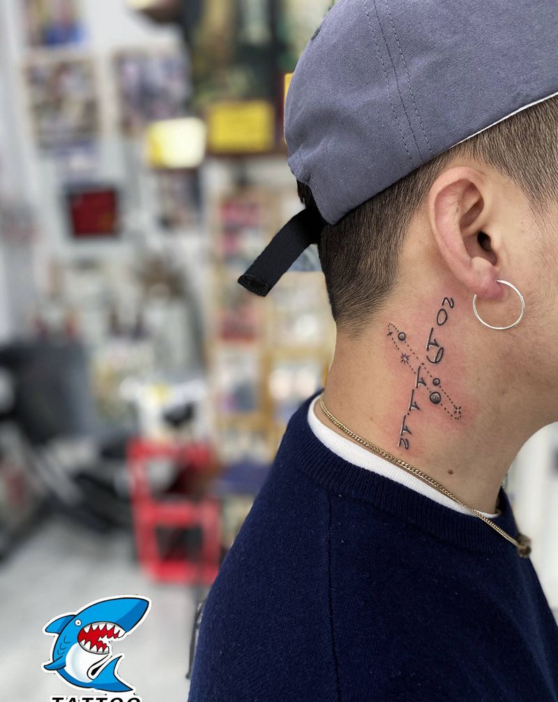 当前位置: 首页 >山东省威海市纹身店-威海玩刺青工作室纹身图案>英文纹身图片_颈部花体字纹身图案