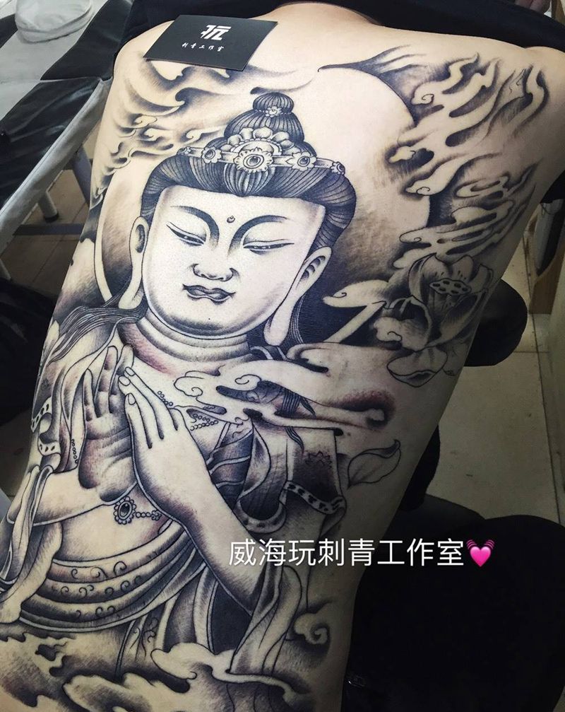 当前位置: 首页 >山东省威海市纹身店-威海玩刺青工作室纹身图案>问佛纹身图片