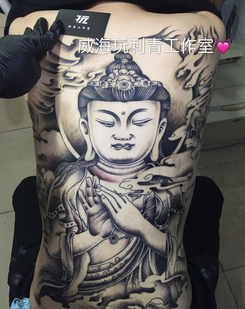 当前位置: 首页 >山东省威海市纹身店-威海玩刺青工作室纹身图案>问佛纹身图片