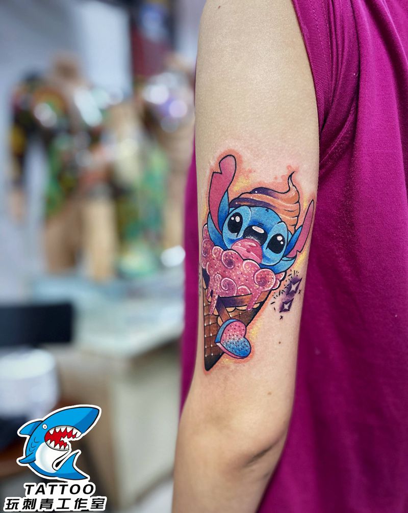 当前位置: 首页 >山东省威海市纹身店-威海玩刺青工作室纹身图案>史迪仔纹身图片_手臂New School纹身图案