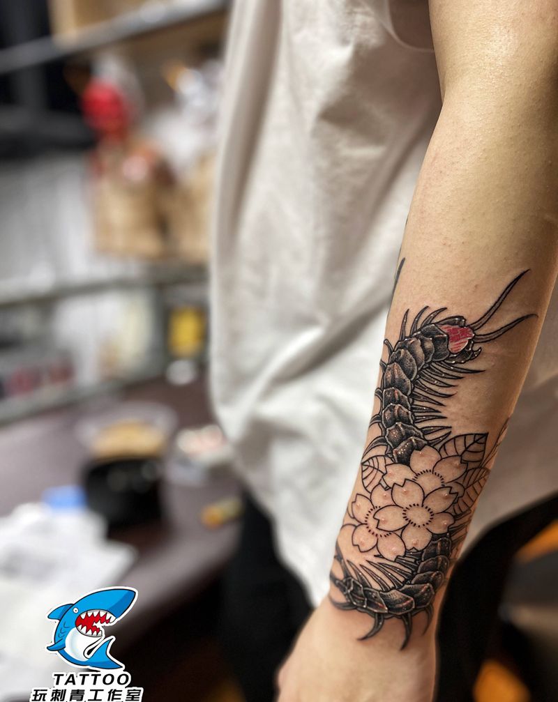 当前位置: 首页 >山东省威海市纹身店-威海玩刺青工作室纹身图案>蜈蚣纹身图片_手部Old School纹身图案