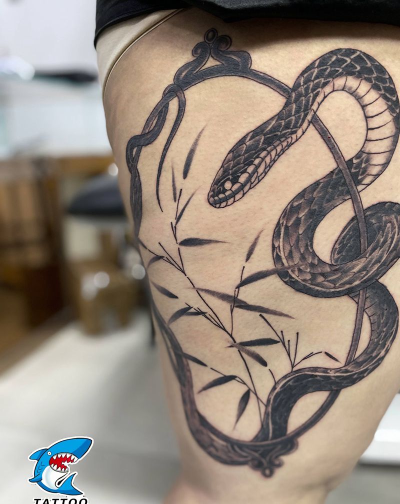 当前位置: 首页 >山东省威海市纹身店-威海玩刺青工作室纹身图案>蛇纹身图片_腿部图腾水墨纹身图案