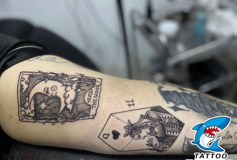 当前位置: 首页 >山东省威海市纹身店-威海玩刺青工作室纹身图案>扑克牌纹身图片_手臂点刺纹身图案