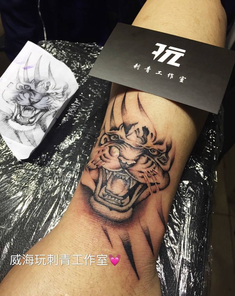 当前位置: 首页 >山东省威海市纹身店-威海玩刺青工作室纹身图案>虎头遮盖烟疤纹身图片