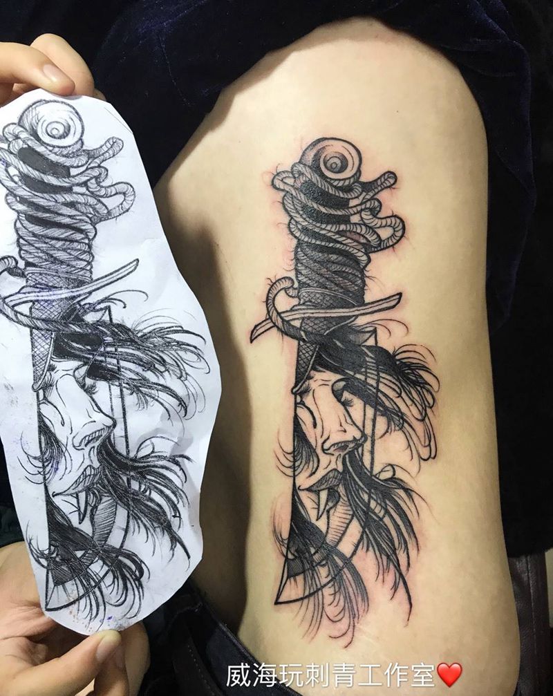 当前位置: 首页 >山东省威海市纹身店-威海玩刺青工作室纹身图案>腰刀纹身图片