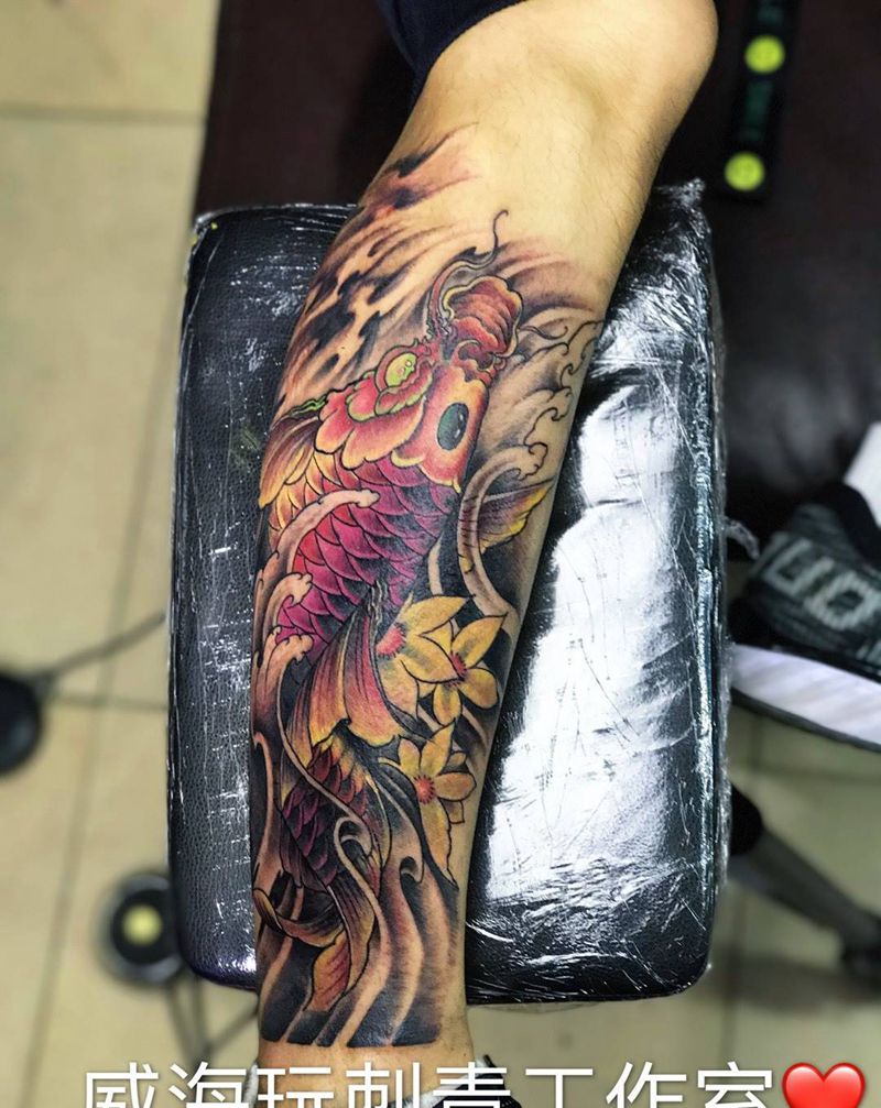当前位置: 首页 >山东省威海市纹身店-威海玩刺青工作室纹身图案>彩色包小腿纹身图片