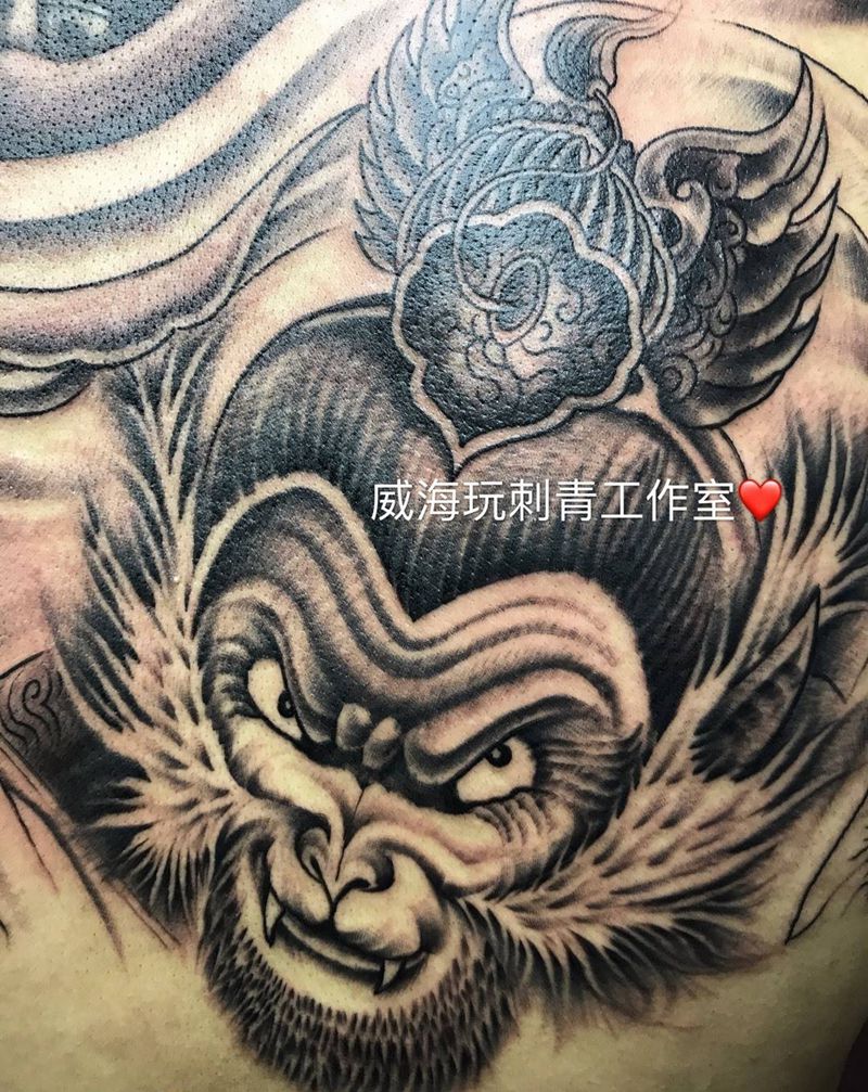 当前位置: 首页 >山东省威海市纹身店-威海玩刺青工作室纹身图案>逍遥自在孙悟空未完成纹身图片