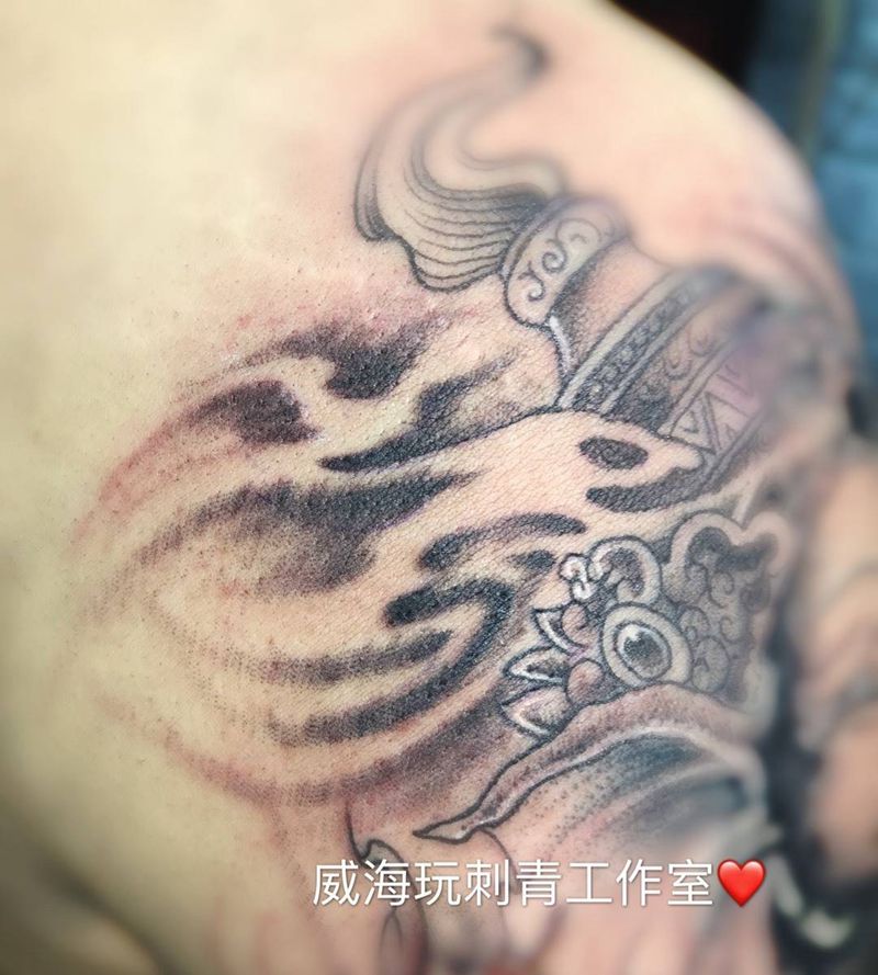 黑灰满背纹身图案