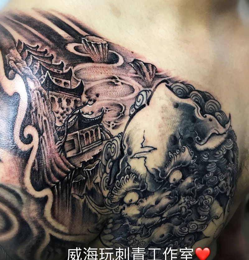 黑灰满背纹身图案