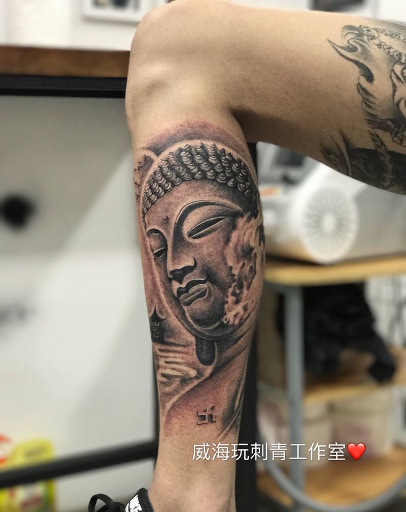 当前位置: 首页 >山东省威海市纹身店-威海玩刺青工作室纹身图案>佛纹身图片_腿部纹身图案