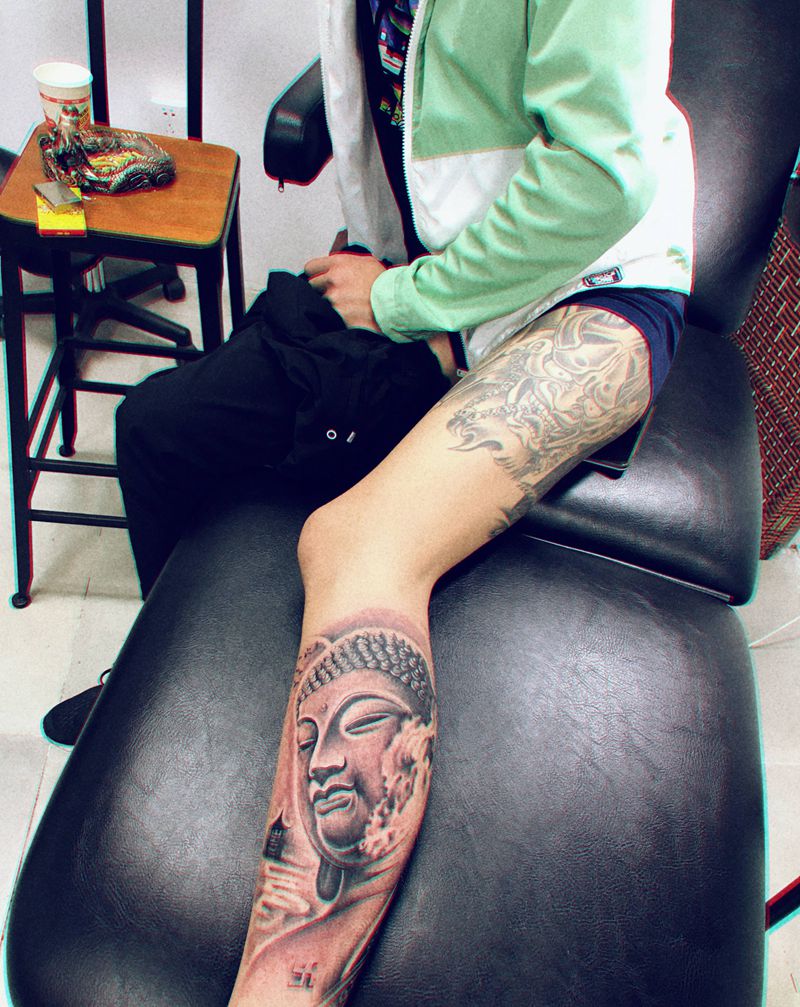 当前位置: 首页 >山东省威海市纹身店-威海玩刺青工作室纹身图案>佛纹身图片_腿部纹身图案