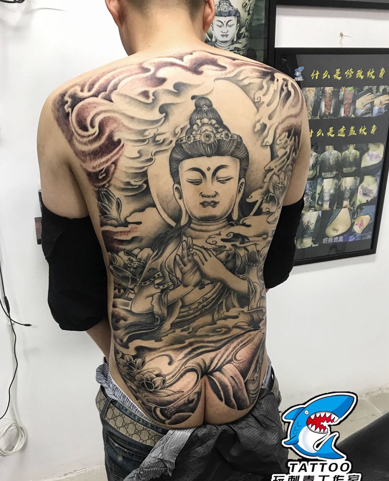 黑灰满背纹身图案