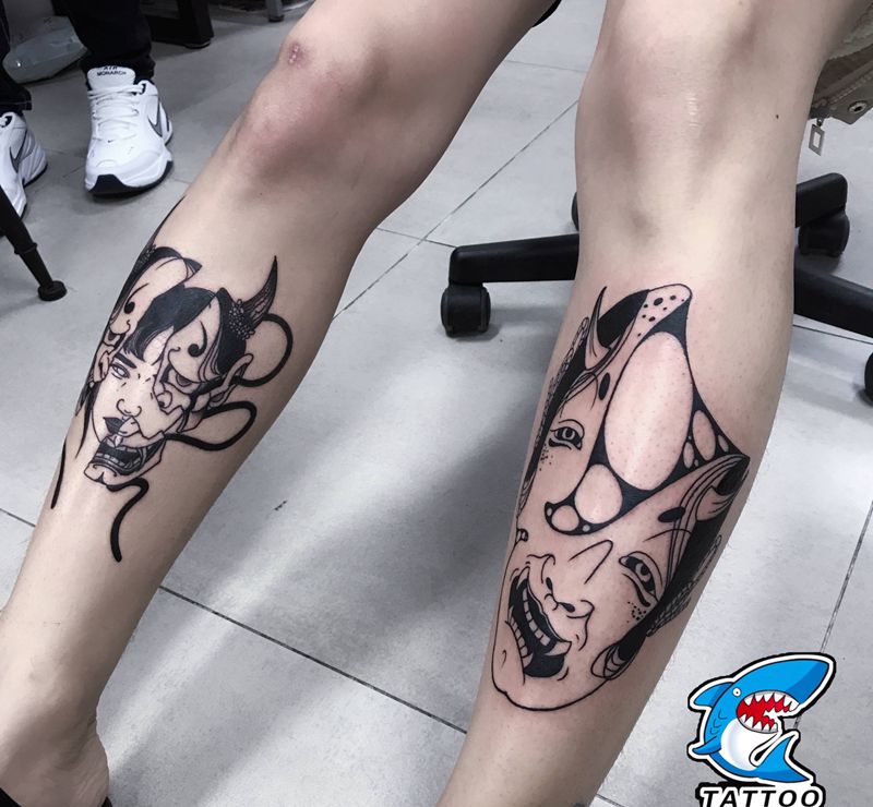 当前位置: 首页 >山东省威海市纹身店-威海玩刺青工作室纹身图案>能面系列纹身图片_腿部纹身图案