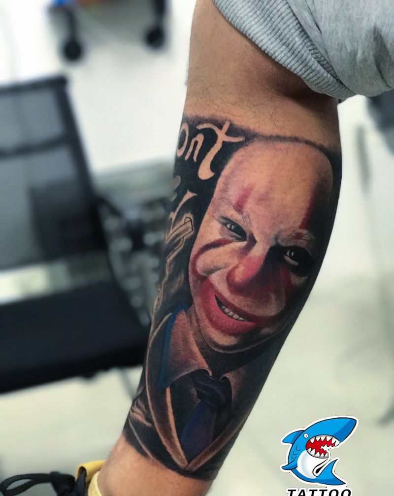 当前位置: 首页 >山东省威海市纹身店-威海玩刺青工作室纹身图案>小丑纹身图片_腿部纹身图案