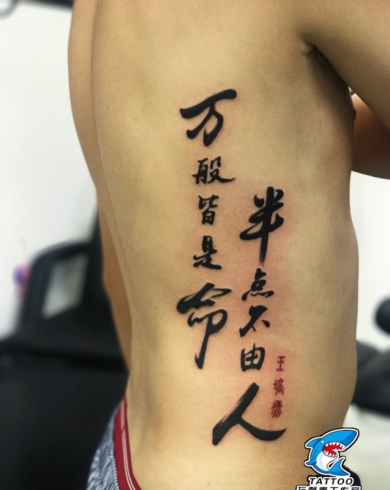 当前位置: 首页 >山东省威海市纹身店-威海玩刺青工作室纹身图案>中国风书法纹身图片_腹部花体字纹身图案