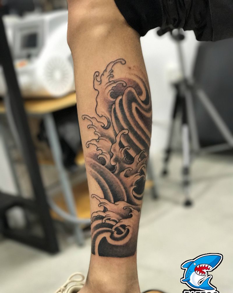 当前位置: 首页 >山东省威海市纹身店-威海玩刺青工作室纹身图案>浪腿纹身图片_腿部纹身图案