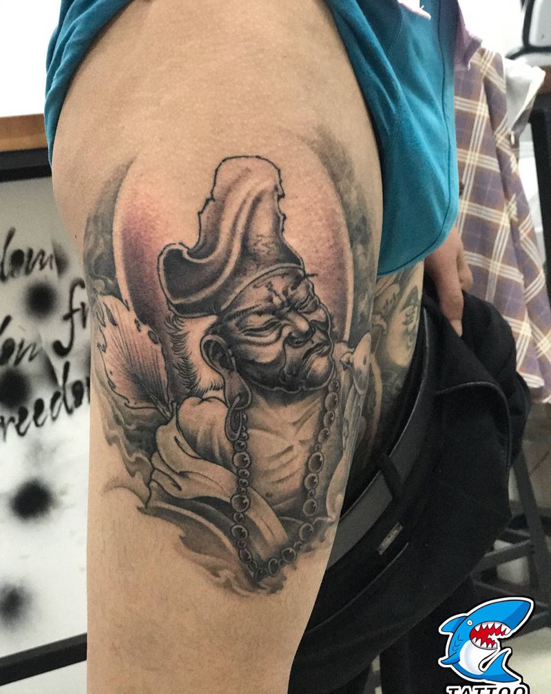当前位置: 首页 >山东省威海市纹身店-威海玩刺青工作室纹身图案>济公纹身图片_腿部新传统纹身图案