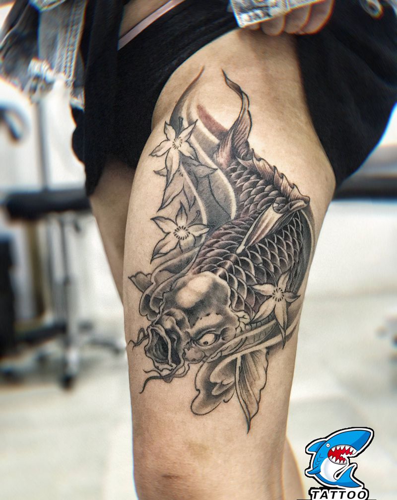 鲤鱼纹身图片_腿部新传统纹身图案