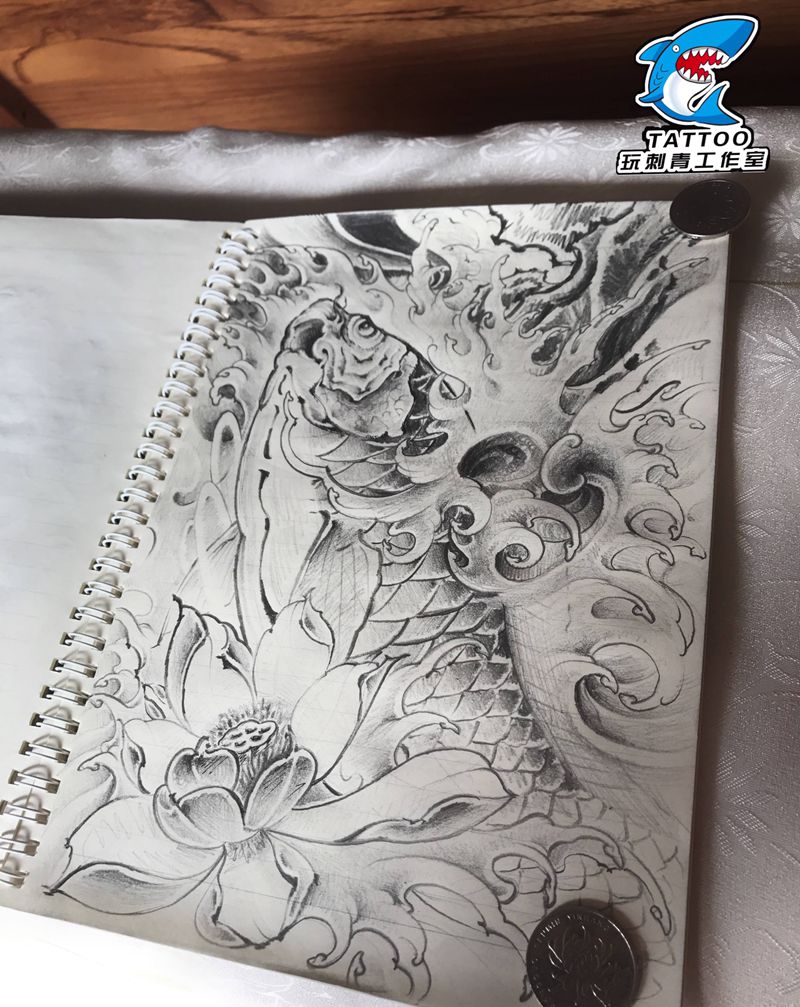 当前位置: 首页 >山东省威海市纹身店-威海玩刺青工作室纹身图案>鲤鱼设计纹身图片_手臂纹身图案
