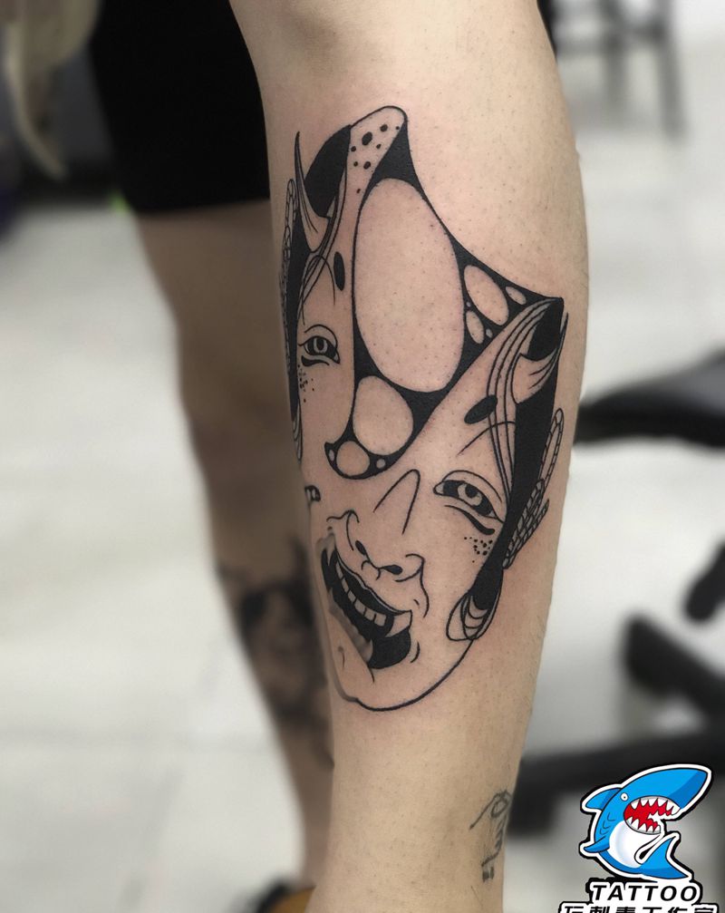 当前位置: 首页 >山东省威海市纹身店-威海玩刺青工作室纹身图案>能面纹身图片_腿部纹身图案