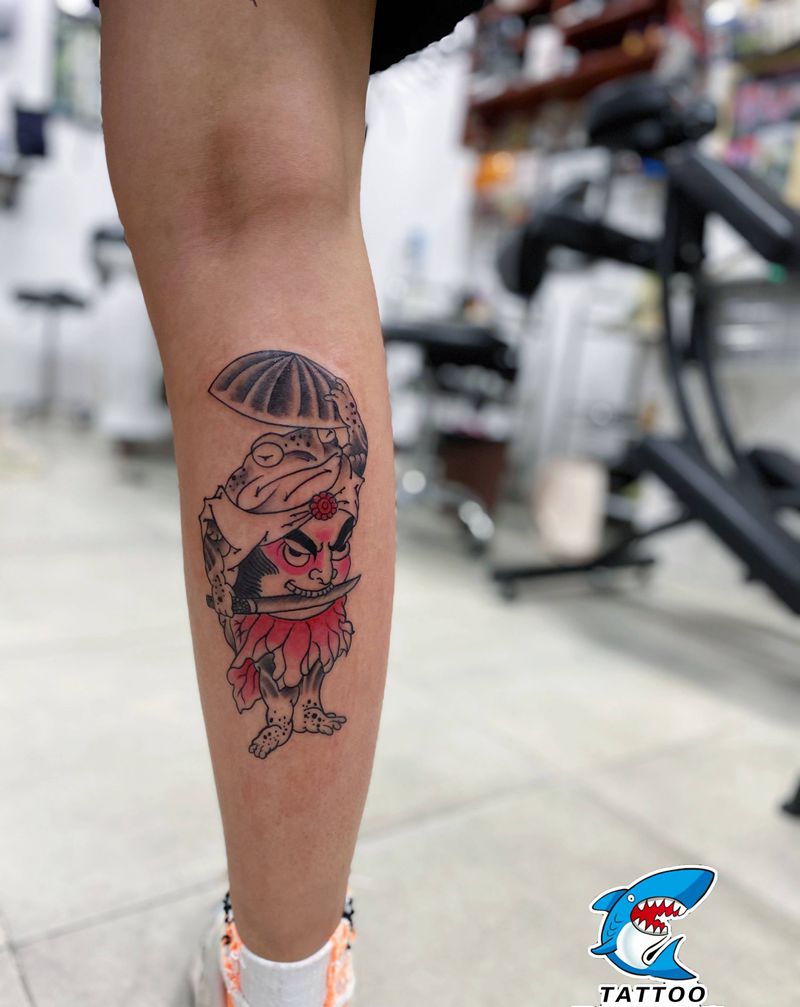 当前位置: 首页 >山东省威海市纹身店-威海玩刺青工作室纹身图案>青蛙侠客纹身图片_腿部老传统纹身图案