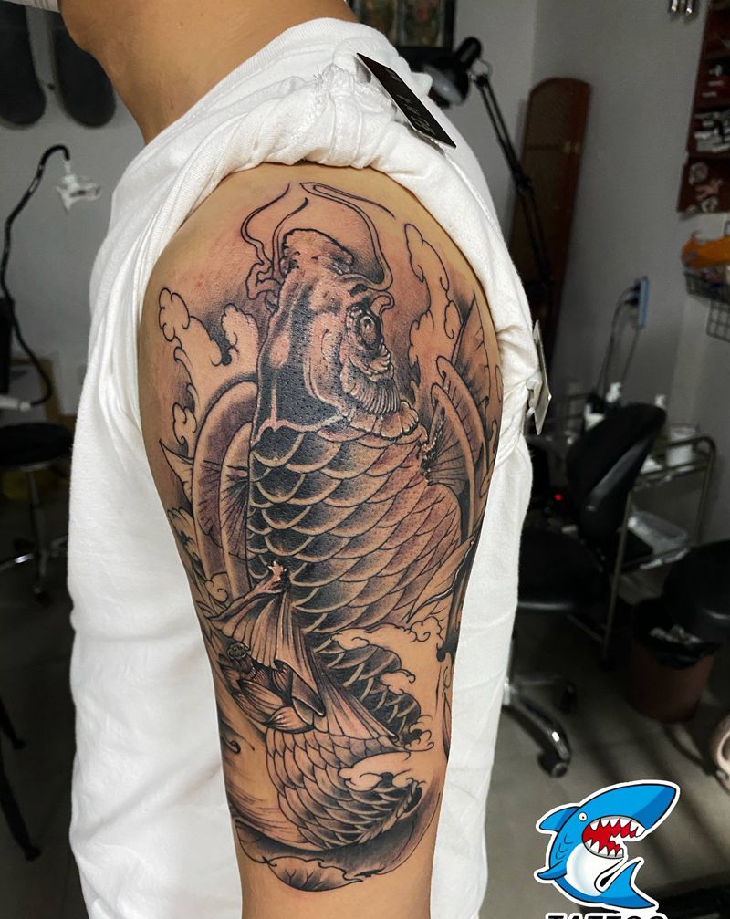 当前位置: 首页 >山东省威海市纹身店-威海玩刺青工作室纹身图案>鲤鱼图纹身图片_手臂纹身图案