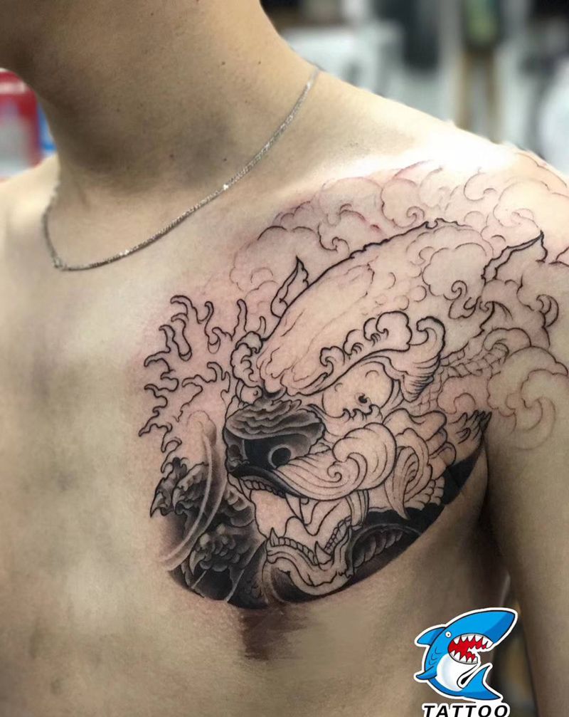 当前位置: 首页 >山东省威海市纹身店-威海玩刺青工作室纹身图案>福狮纹身图片_胸部新传统纹身图案