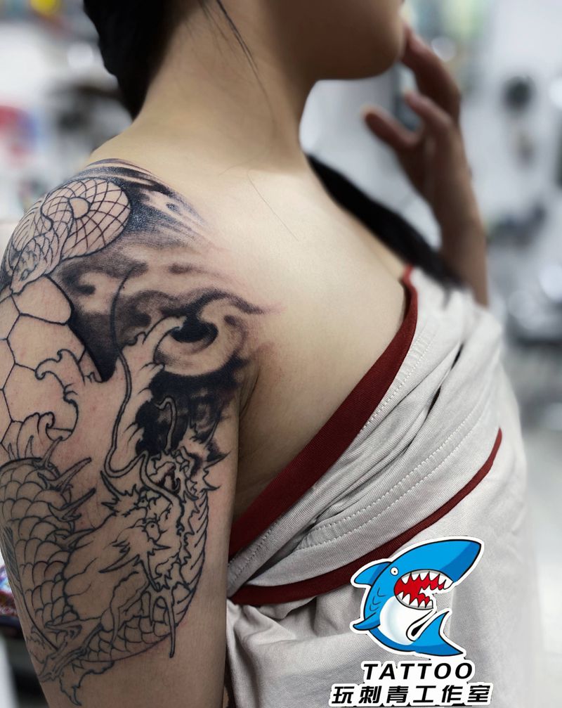 • 纹身吧推荐的披肩图腾半胛纹身图案作品展示