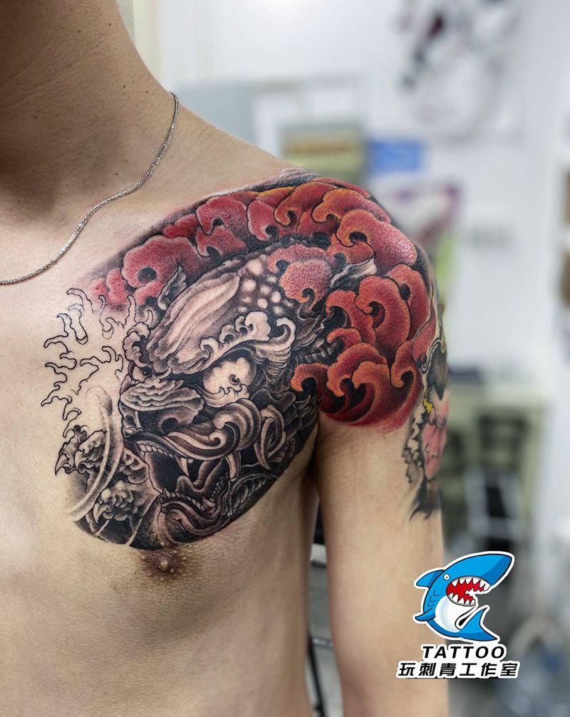 当前位置: 首页 >山东省威海市纹身店-威海玩刺青工作室纹身图案>福狮纹身图片_胸部新传统纹身图案
