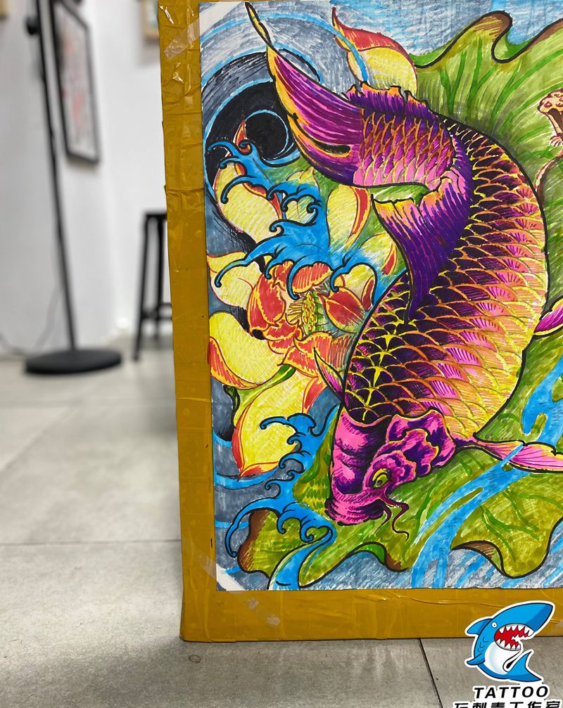 当前位置: 首页 >山东省威海市纹身店-威海玩刺青工作室纹身图案>鲤鱼荷花纹身图片_背部新传统纹身图案
