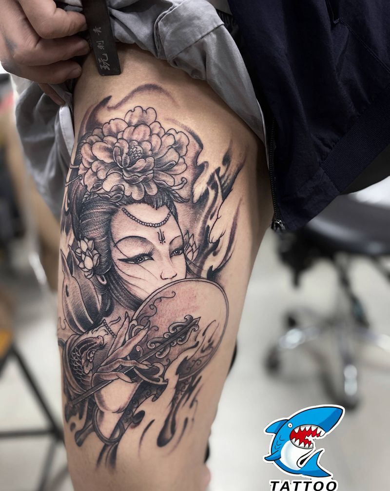 当前位置: 首页 >山东省威海市纹身店-威海玩刺青工作室纹身图案>艺妓纹身图片_腿部新传统纹身图案