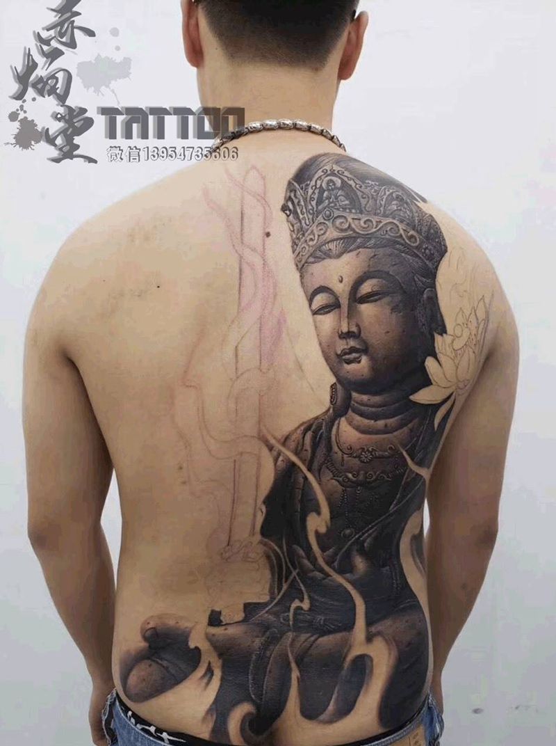 黑灰满背纹身图案