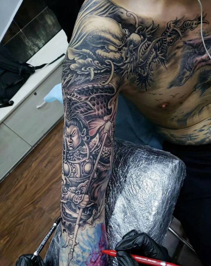 当前位置: 首页 >山东省济宁市纹身店-山东赤焰堂纹身纹身图案>半甲花臂纹身图片