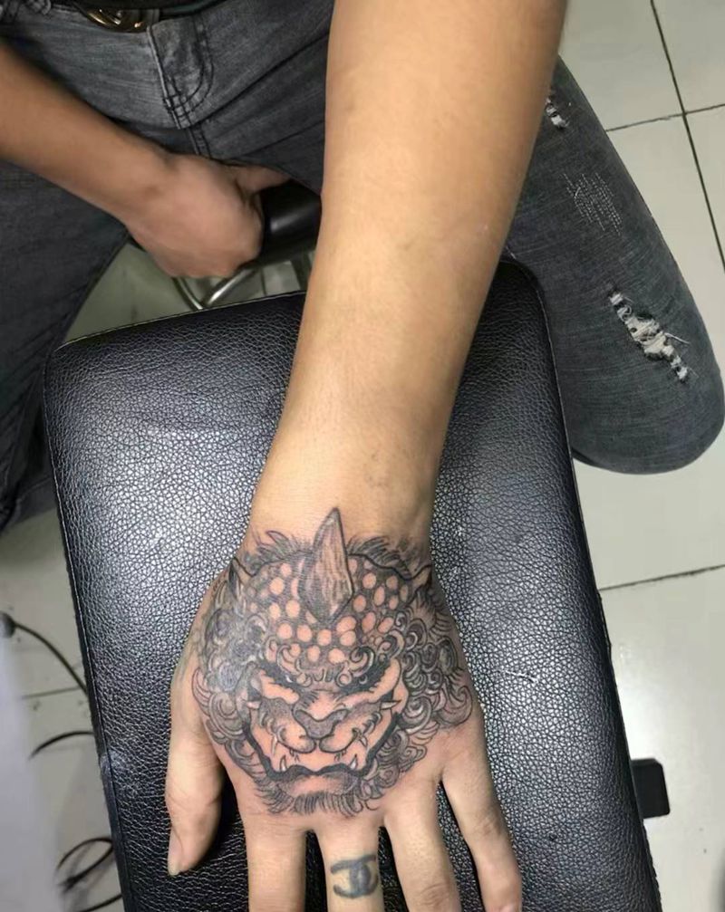 当前位置: 首页 >山东省泰安市纹身店-匠刺青纹身图案>唐狮纹身图片_手部纹身图案