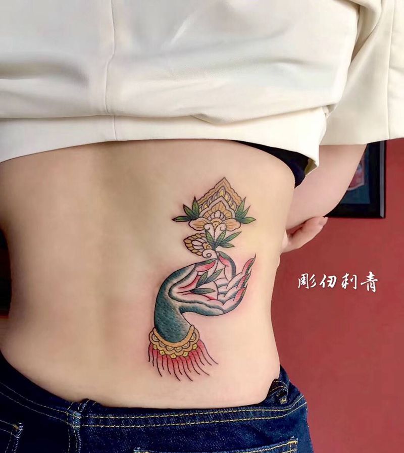 时尚性感的腹部莲花纹