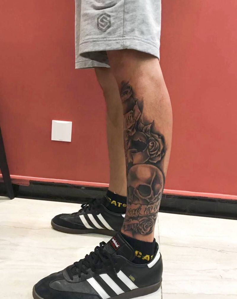 • T网红王老大花腿龙纹身图片_腿部新传统纹身图案