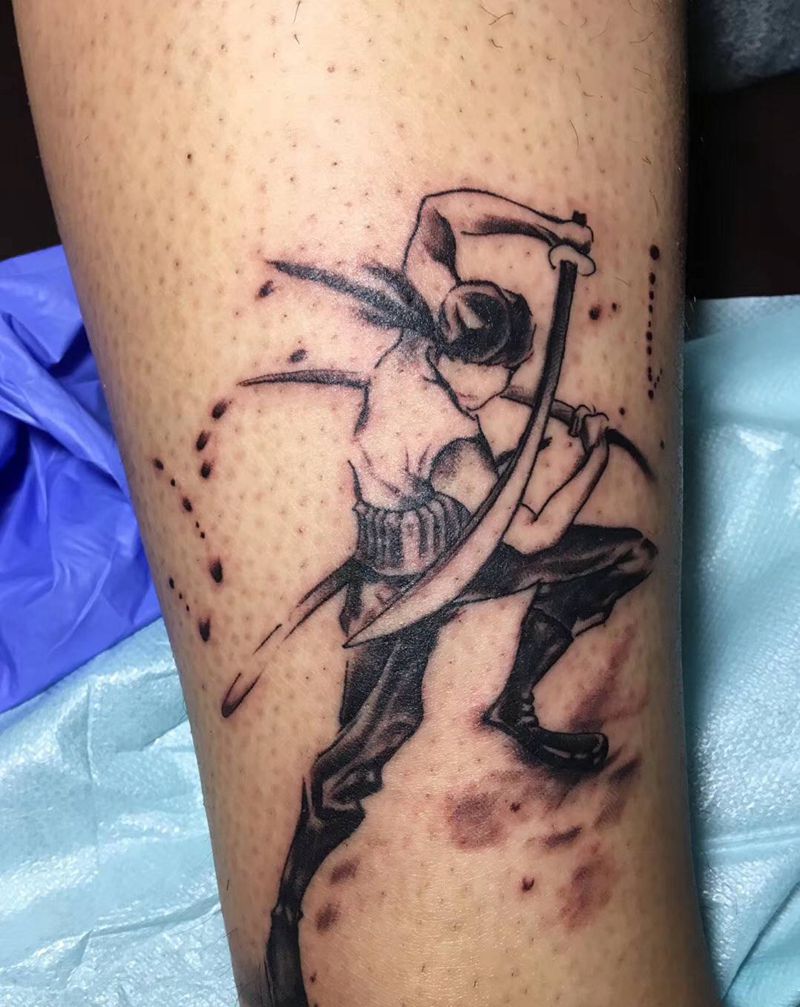 • T包小腿吹火男+阿多福纹身图片_腿部老传统新传统吹火男阿