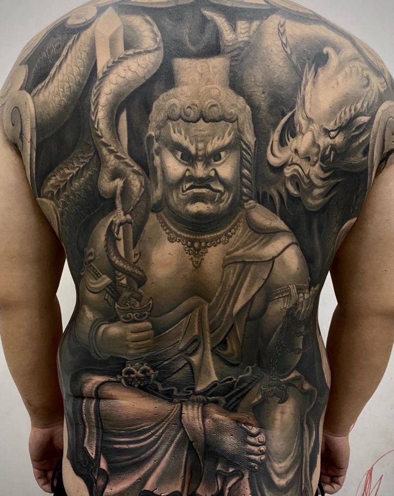 当前位置: 首页 >山东省济宁市纹身店-山东济宁兖州赤焰堂纹身图案>石雕神佛纹身图片_背部新传统纹身图案