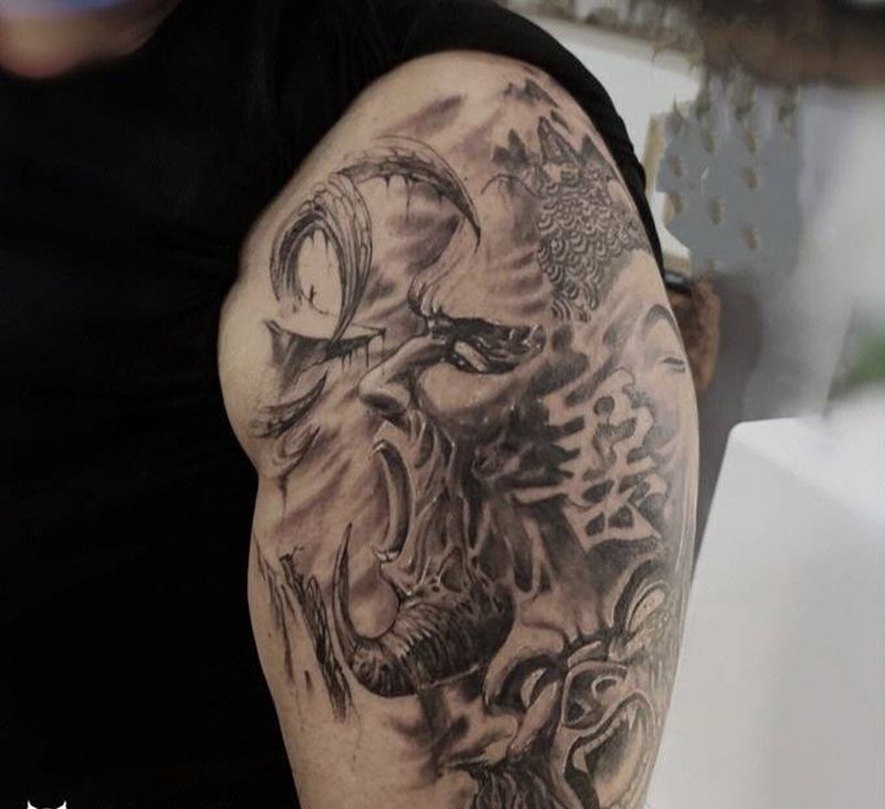 黑灰满背纹身图案