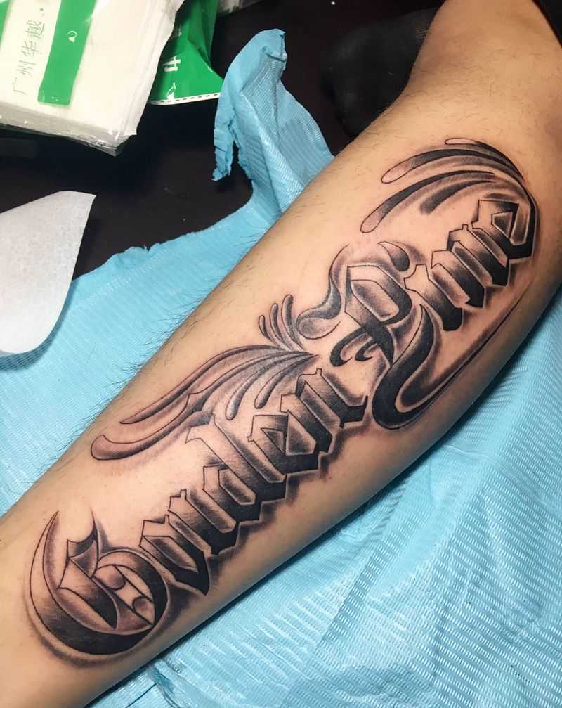 当前位置: 首页 >山东省威海市纹身店-大鹏刺青纹身图案>原创奇卡诺字体纹身图片_腿部纹身图案